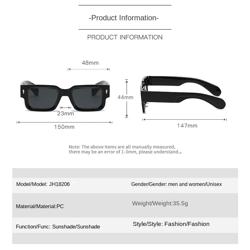 Fashion Retro Thick Leg Square Frame Sunglasses Men Women Popular Brand Small Frame Rice Nail Sun Glasses Black Yellow Glasses